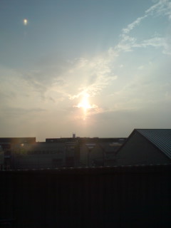 11:00。今回本当に色々と世話をしてくれた友人Oと共に近くの温泉で一汗流し、つじいのラーメンをいただく。機材&荷物を送り、フェリー埠頭でコーヒーを片手にOと青春のひと時を今一度分かち合った後、15:00過ぎの電車で東京へ出発。車中から空をパチリ。
