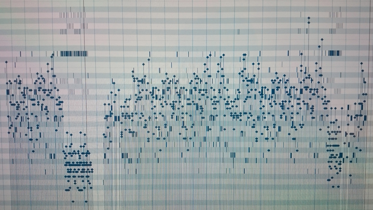 色々な場面で何度か話して来た事ですが、「アキタノブオ」の制作では自分が「ギターを弾きながら歌う」事を想定してアレンジを組んでゆくため、自ずとドラムとベースへの比重が増し…ふと気がつくと出来上がったベースのMIDIフレーズが激的に難しくなっているという事態もしばしば…。